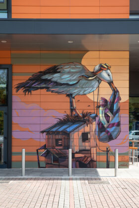 Un altro murales che è già entrato nel cuore di molti è quello dell’abbraccio tra un uomo e una donna su un muro dell’Ospedale Sant’Antonio di Padova. Alto più di 20 metri, il murale è un dono di nozze dell’artista olandese JDL al fratello adottivo e alla moglie malata di cancro. Un invito all’amore, alla resistenza e alla rinascita, non solo dalla pandemia.
