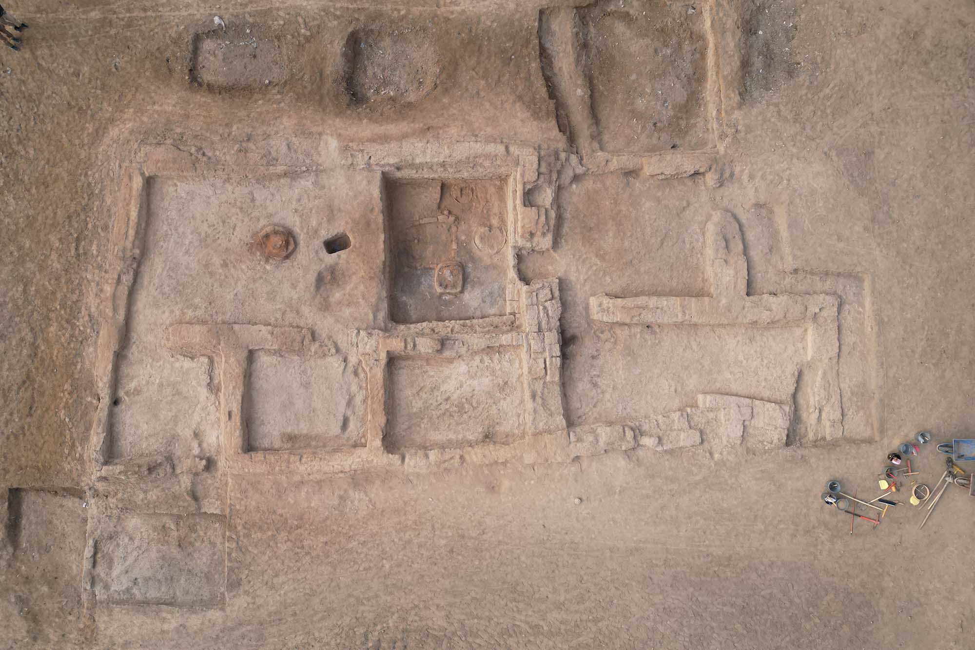 Nel sito sono state scoperte due fosse sacrificali, contenenti migliaia di manufatti in oro, bronzo, giada, e avorio, così come è presente ceramica che differisce da qualsiasi altra facies culturale studiata e rinvenuta in Cina. Gli archeologi ipotizzano si sia aperta una porta su di una cultura vissuta tra i cinquemila ed i tremila anni fa.