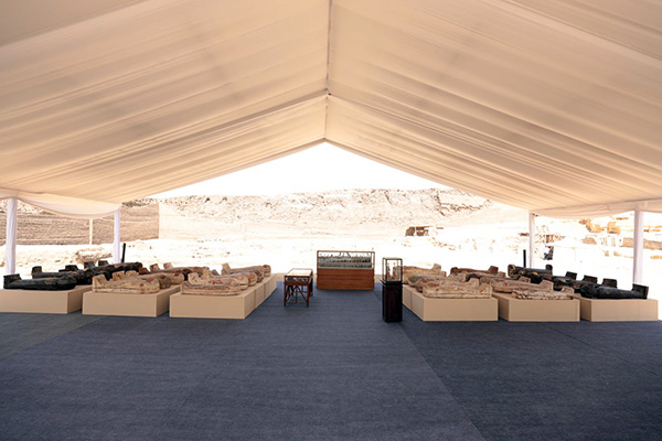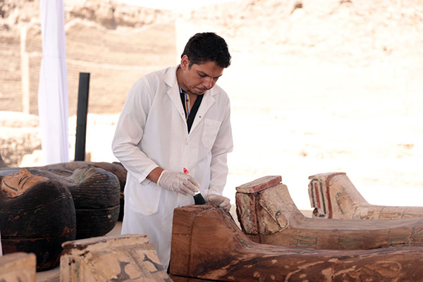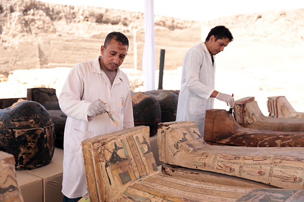 I ricercatori egiziani, alla quarta missione nell’area, hanno individuato un nuovo gruppo di pozzi funerari. Da questi, sono stati riportati alla luce circa 250 sarcofagi in legno colorato del periodo tardo (VII-IV sec. a.C.), risalenti al 500 a.C. circa. I sarcofagi presentano al loro interno delle mummie in buono stato di conservazione. Sono stati rinvenuti, inoltre, anche amuleti, scatole di legno dipinte e statue lignee, alcune delle quali con il volto dorato. Dallo scavo di uno dei pozzi funerari è stato rinvenuto, inoltre, un sarcofago in buono stato di conservazione che sembrerebbe contenere capitoli del Libro dei Morti, prontamente trasferito nei laboratori di restauro del Museo Egizio di Piazza Tahrir, al Cairo.
