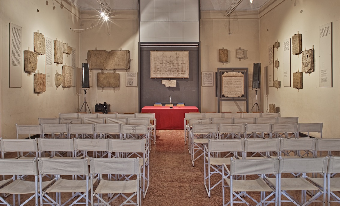 Esposte nei luoghi più frequentati delle città (chiese, palazzi pubblici, piazze), nelle epigrafi si trova depositata la registrazione di eventi pubblici e privati memorabili. Questi fogli di pietra ancora oggi ci parlano. Sono fonti uniche e inusuali della vita quotidiana del tempo in cui furono incisi. Raccontano la storia minima di figure comuni come ostiari, studenti, fabbri, speziali, notai; oppure la grande storia di abati e potenti famiglie nobiliari come i Della Rovere di papa Giulio II, di cui si conserva qui lo scudo araldico.